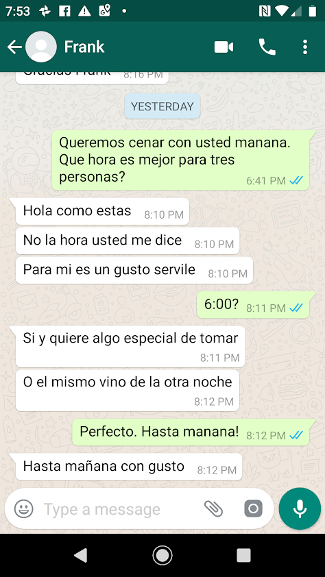 We’ve been telling Jackie about our new friend Frank and his restaurant. We are going to Frank’s place, La Trocha, for dinner tonight. I had a WhatsApp conversation with Frank in Spanish to secure us a slot tonight. Only after I pored over it when I got home did I realize he had asked me if we wanted the same wine we had last time or something “special”. I followed up with him this morning and told him we loved the wine we had last time. Jill and I get so tickled when we are able to have simple transactional conversations in Spanish!