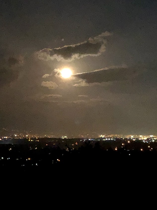 For the last couple of nights we’ve been treated to a full(ish) moon rising over the ash cloud across the valley. The picture doesn’t do it justice. It’s breathtaking.