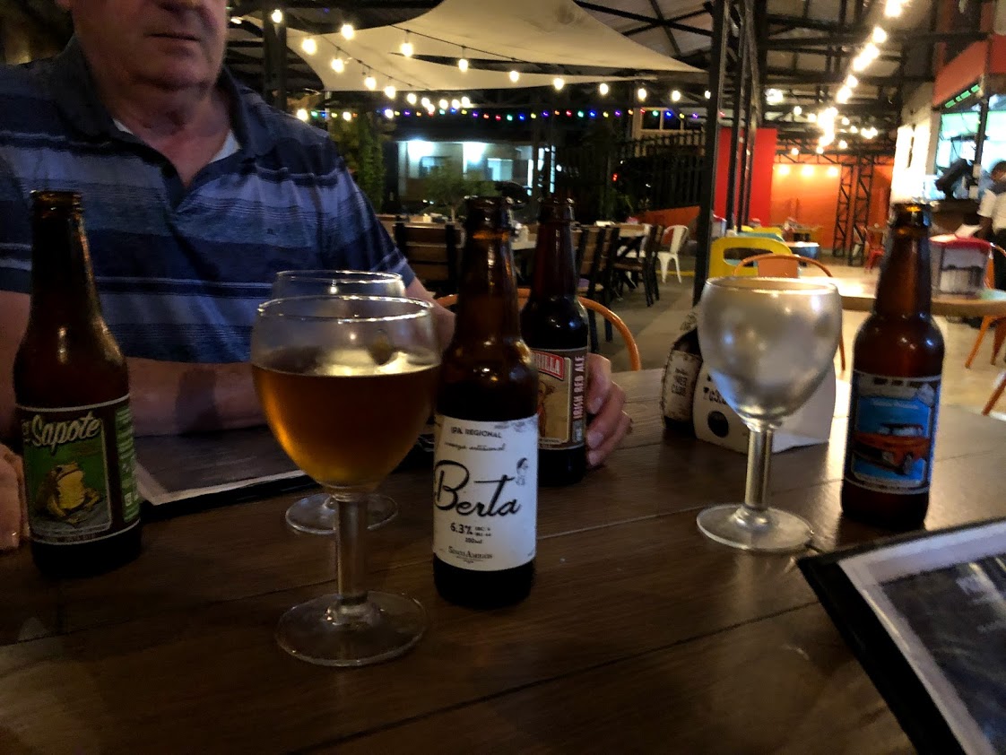 Last night we discovered that our favorite pizza spot, Pizzeria la Finca, also has locally brewed craft beer. I’m not much of a beer drinker, but Non and D were delighted. My dad asked what kind of beer they had and our waiter brought a selection of their craft brews from the cooler along with four chilled beer schooners. Jill and I had not intended to drink beer, but we thought it was easier to just choose a beer from the array on offer since the nice man had already gone to the trouble of bringing out the chilled beer receptacles.