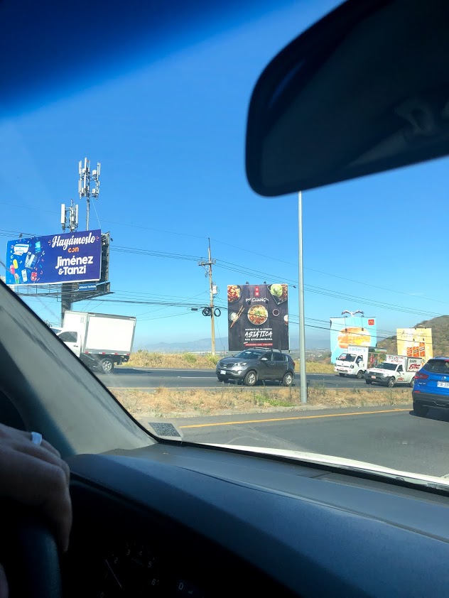 Jill checked the PriceSmart hours and we had about 45 minutes to kill until PriceSmart opened. We decided to use that time to drive in toward San Jose, since we’d never actually laid eyes on San Jose (other than from the window of an airplane). We got on Ruta 27, the autobahn of Costa Rica, and headed east toward the suburbs of Santa Ana and Escazu, which are 13 and 10 kilometers from the San Jose city center respectively. It was all skittles and beer until we got to Escazu. Then our 100 km/hour road ground to a halt. We were caught in the morning crush of people heading in to work in San Jose.